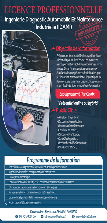 LICENCE : INGÉNIERIE DIAGNOSTIC AUTOMOBILE ET MAINTENANCE INDUSTRIELLE (IDAMI)